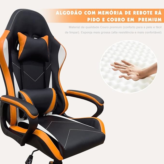 Cadeira de jogos com encosto alto, apoios de braços fixos em quatro pontos, altura ajustável (Laranja)