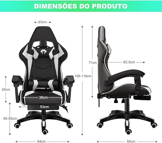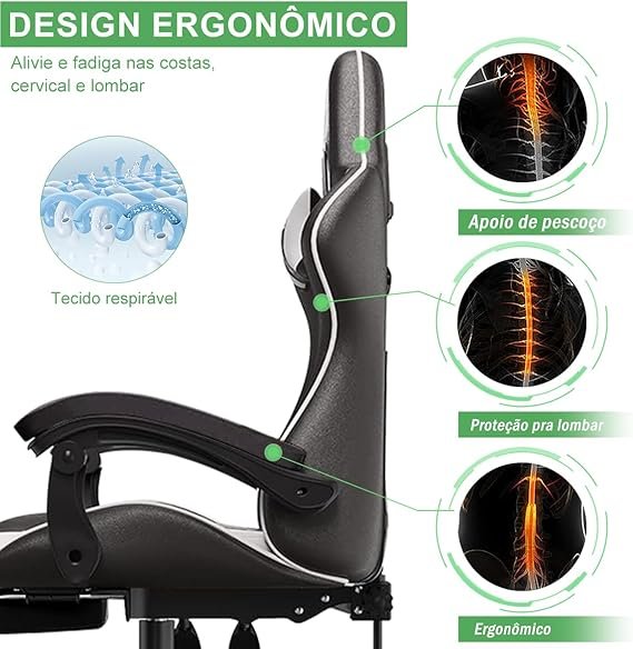 Cadeira Ergonomica Gamer Com Apoio Para Os Pés Branco